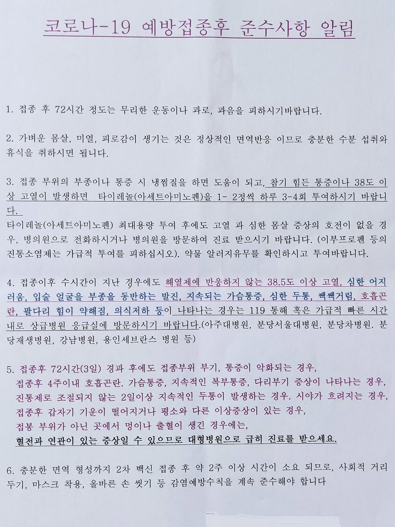 May 16, 2021 · 코로나 백신 예방접종 후 안내사항 정리.